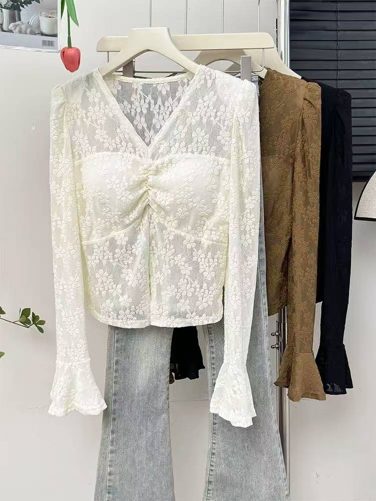 Blusa manga larga con encaje